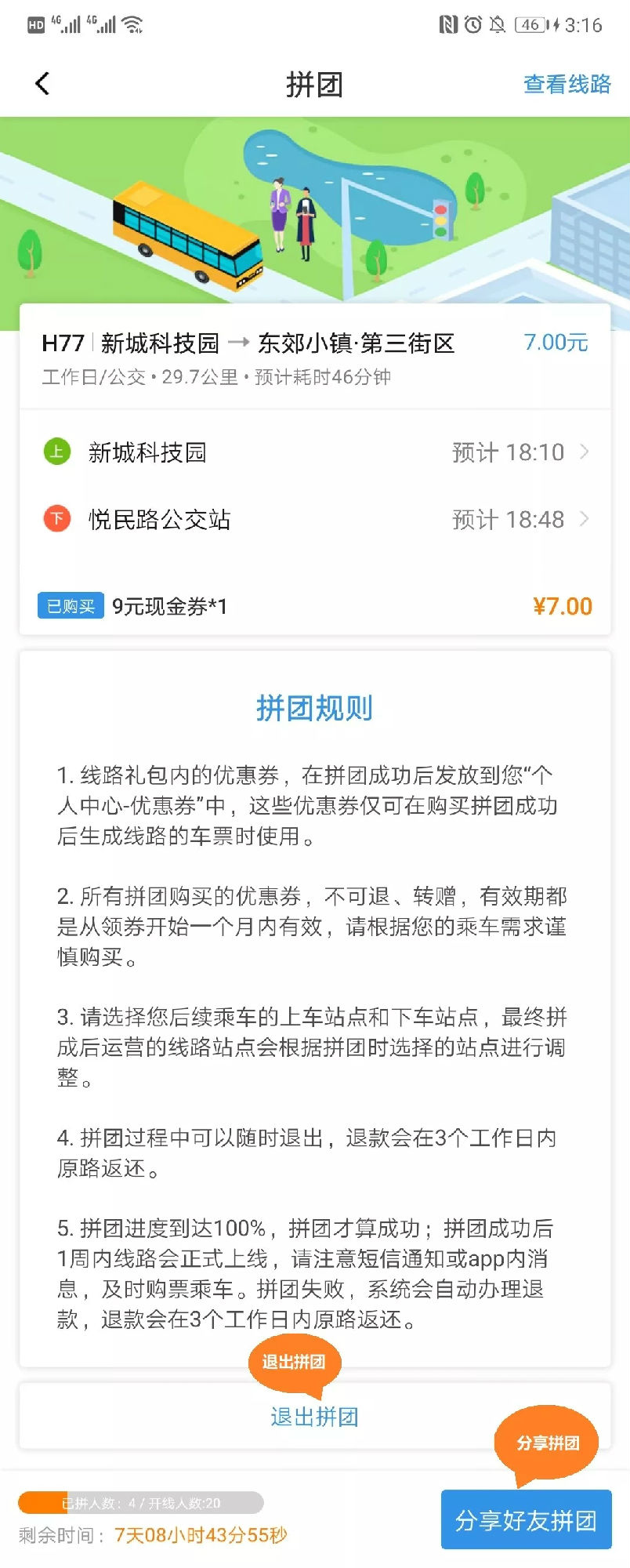 點(diǎn)擊線(xiàn)路詳情頁(yè)面下方的“購票”還可以選擇上下車(chē)站點(diǎn)、修改乘車(chē)人數更多購票細則,可點(diǎn)擊左下方“購票規則”查看