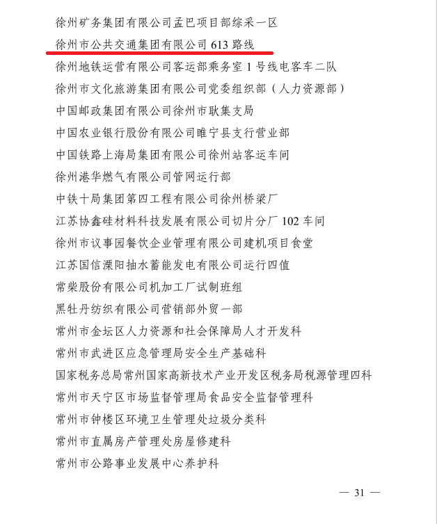 4月28日下午,江蘇省總工會(huì )發(fā)布關(guān)于表彰2022年省五一勞動(dòng)獎和省工人先鋒號的決定,徐州交控公交集團613路線(xiàn)獲得“江蘇省工人先鋒號”殊榮。