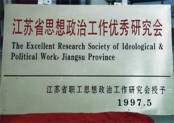 1997年5月,江蘇省職工思想政治工作研究會(huì )授予我公司“江蘇省思想政治工作優(yōu)秀研究會(huì )”稱(chēng)號。