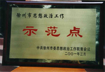 2001年3月,中共徐州市委思想政治工作聯(lián)席會(huì )議中,我公司獲得“徐州市思想政治工作示范點(diǎn)”稱(chēng)號。