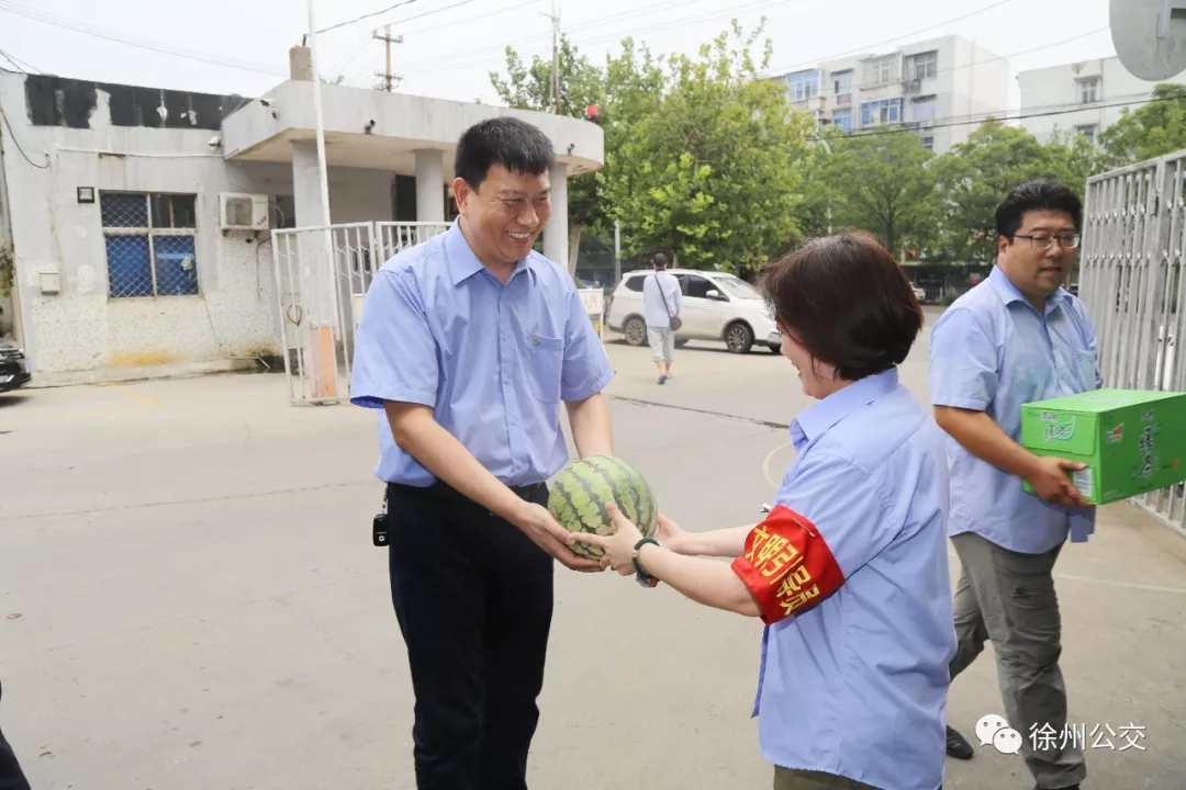 為切實(shí)關(guān)心關(guān)愛(ài)堅守一線(xiàn)的公交員工,徐州公交認真開(kāi)展“夏日送清涼”活動(dòng),7月22日上午11:45,領(lǐng)導班子分4組深入站臺、調度室、修理車(chē)間等17處基層一線(xiàn),為奮戰一線(xiàn)、堅守崗位的員工送上涼茶、西瓜等清涼物資,向冒著(zhù)高溫酷暑、辛勤工作的一線(xiàn)員工表示敬意和慰問(wèn),叮囑他們落實(shí)好各項防暑降溫措施,確保在高溫環(huán)境下市民能正常清涼出行。