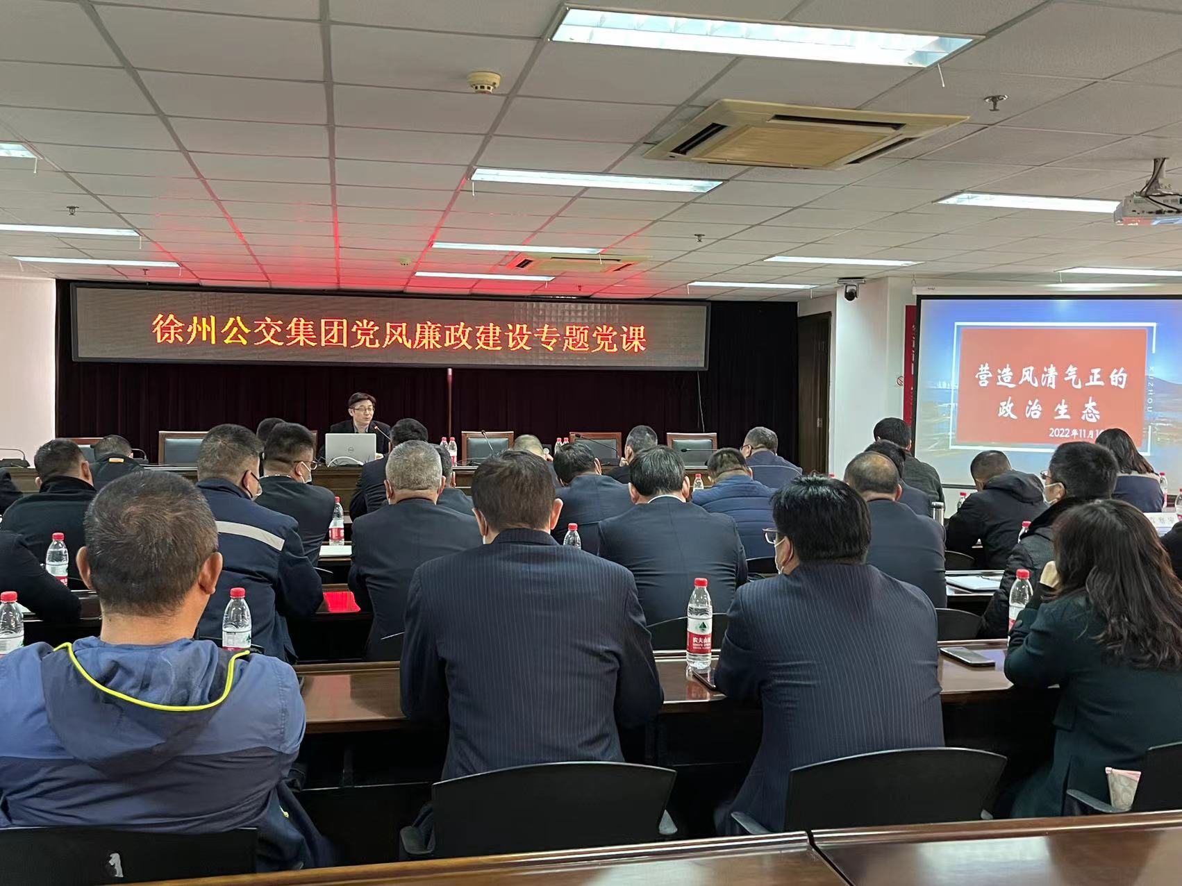 為深入學(xué)習貫徹落實(shí)黨的二十大精神,堅定不移推進(jìn)全面從嚴治黨向縱深發(fā)展,營(yíng)造集團風(fēng)清氣正的政治生態(tài),11月17日,徐州公交集團開(kāi)展黨風(fēng)廉政建設專(zhuān)題黨課。公交集團黨委副書(shū)記、總經(jīng)理袁夫松主持會(huì )議,集團機關(guān)部室、基層單位負責人等50余人參加學(xué)習。