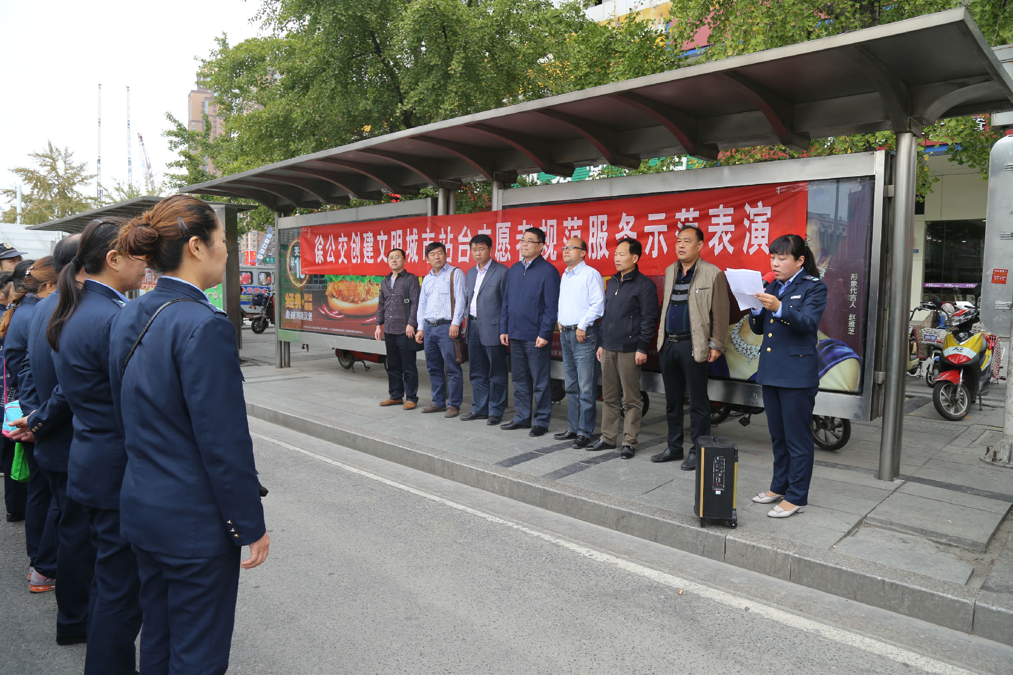 為進(jìn)一步規范站臺服務(wù)引導工作,不斷推動(dòng)文明城市創(chuàng )建順利進(jìn)行,10月9日上午,公司在徐州站主廣場(chǎng)舉行了一次公交站臺秩序規范服務(wù)示范表演。團市委副書(shū)記夏友峰、運管處客運科科長(cháng)陳福升、以及市創(chuàng )建辦交通秩序二組三位領(lǐng)導蒞臨觀(guān)摩。服務(wù)督導隊34名站臺志愿者參加了示范表演。