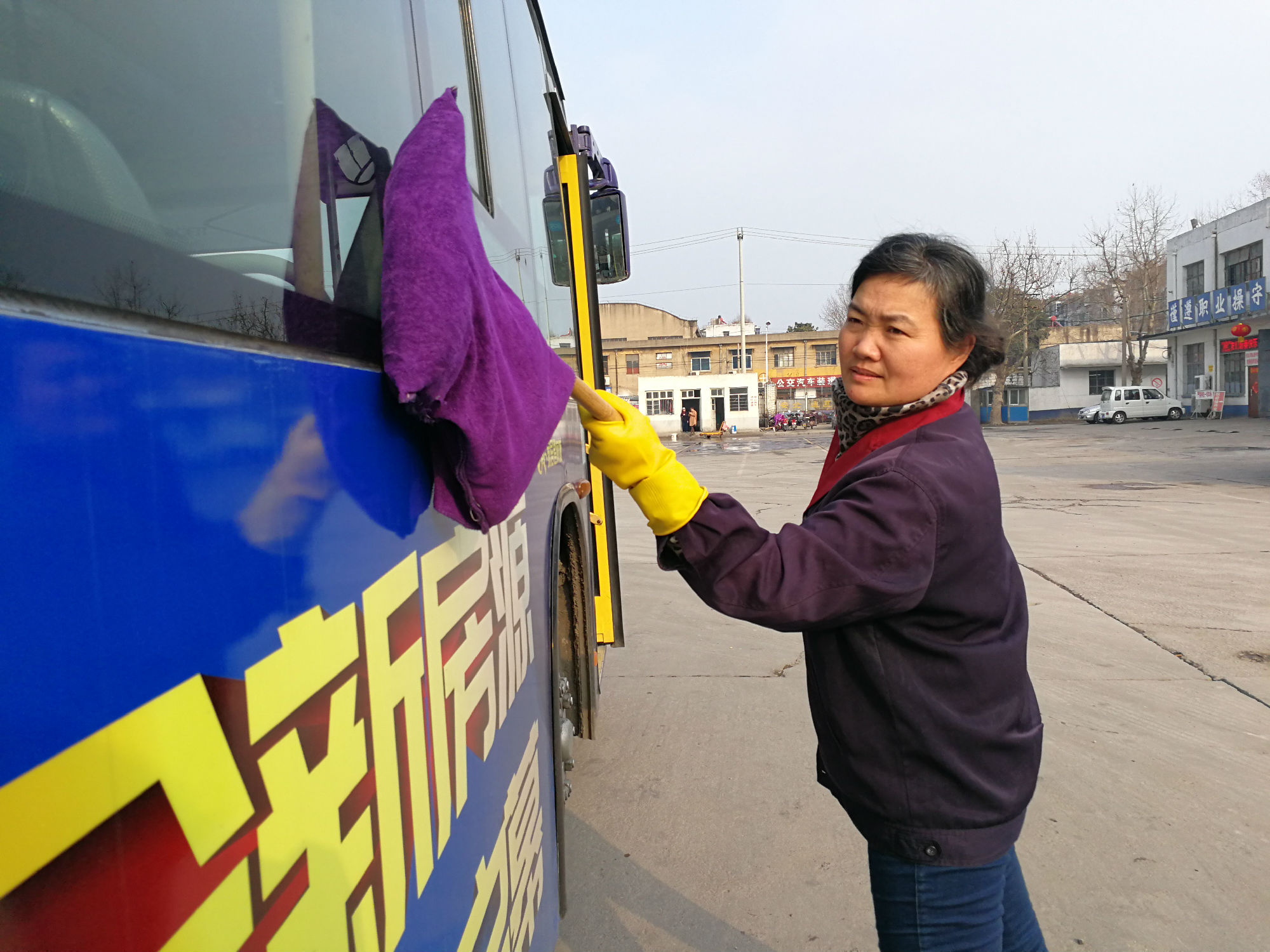 清晨5點(diǎn),74路保潔員韓黎明已經(jīng)來(lái)到韓山車(chē)場(chǎng),開(kāi)始保潔車(chē)輛。由于氣溫較低,車(chē)場(chǎng)內的水龍頭凍壞了,無(wú)法正常使用,她只好到遠一點(diǎn)的地方,將水一桶桶的運來(lái),開(kāi)始細心地擦拭玻璃,車(chē)輛外圍,車(chē)內座椅、內圍板....不放過(guò)一處角落。冬天的水冰涼刺骨,清洗抹布的手凍得通紅,搓搓手、跺跺腳,她又賣(mài)力的干了起來(lái)。車(chē)窗玻璃上厚厚的霜十分難擦,加上道路上經(jīng)常遇到灑水車(chē),跑完一圈回來(lái)車(chē)身又臟了,增加了車(chē)輛保潔難度。韓黎明不怕辛苦,任勞任怨,只要有臟的地方,她就再次清潔,確保出場(chǎng)的每輛車(chē)都干干凈凈。期間,她的衣服多次被汗水浸透,晾晾汗,又凍得發(fā)抖,韓黎明沒(méi)有抱怨,仍然堅守完成自己的工作。