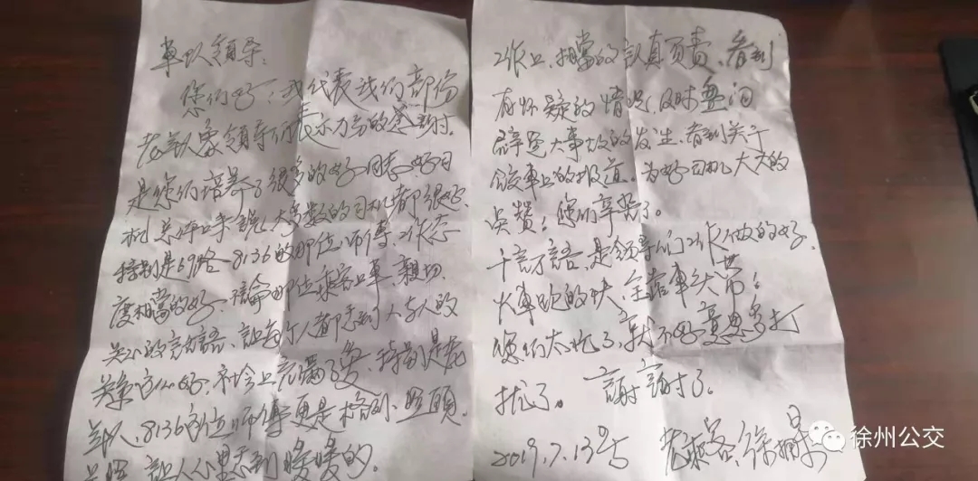 7月15日上午,一位老年乘客來(lái)到新巴士公司,送來(lái)一封表?yè)P信,對69路駕駛員的服務(wù)稱(chēng)贊不已,“雖然今天天氣熱,但是我還是要親自送表?yè)P信,這么優(yōu)秀的同志,應該得到表?yè)P。”老人這樣說(shuō)道。