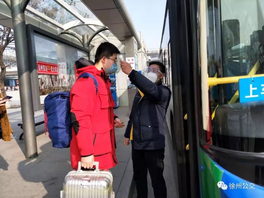 根據《徐州市新型冠狀病毒感染的肺炎疫情防控應急指揮部通告(第1號)》,從1月27日(農歷初三)開(kāi)始,徐州全面暫停徐州市區城市公共交通(徐州東站至徐州站單向點(diǎn)對點(diǎn)接駁線(xiàn)路除外)和道路客運班線(xiàn)、包車(chē)運營(yíng)(機場(chǎng)定制客運除外),徐州各縣(市、區)也同時(shí)停止所有道路客運班線(xiàn)運營(yíng)。“這8輛車(chē)是目前市區內唯一還在運營(yíng)的公交線(xiàn)路了,雖然乘客不多,但我們依然要做到萬(wàn)無(wú)一失。”張經(jīng)理告訴記者,根據上級部門(mén)的要求,徐州公共交通集團順通巴士公司在疫情防控期間每天每班配備8輛車(chē)(分上午、下午、夜班三個(gè)班次),40余名駕駛員輪崗,運營(yíng)時(shí)間為6:00-24:00(每天直到夜里高鐵運營(yíng)結束)。這8輛車(chē)的運行路線(xiàn)為高鐵徐州東站——徐州火車(chē)站單程點(diǎn)對點(diǎn)接駁班車(chē)。每天服務(wù)乘客約500-600人次。為確保疫情防控,所有車(chē)輛堅持做到每趟通風(fēng),1趟1消毒,并使用空氣消毒機進(jìn)行消毒。同時(shí),對所有上車(chē)乘客進(jìn)行體溫測量,嚴禁不戴口罩乘客上車(chē),并對當班駕駛員每趟運營(yíng)結束后都進(jìn)行體溫測量。