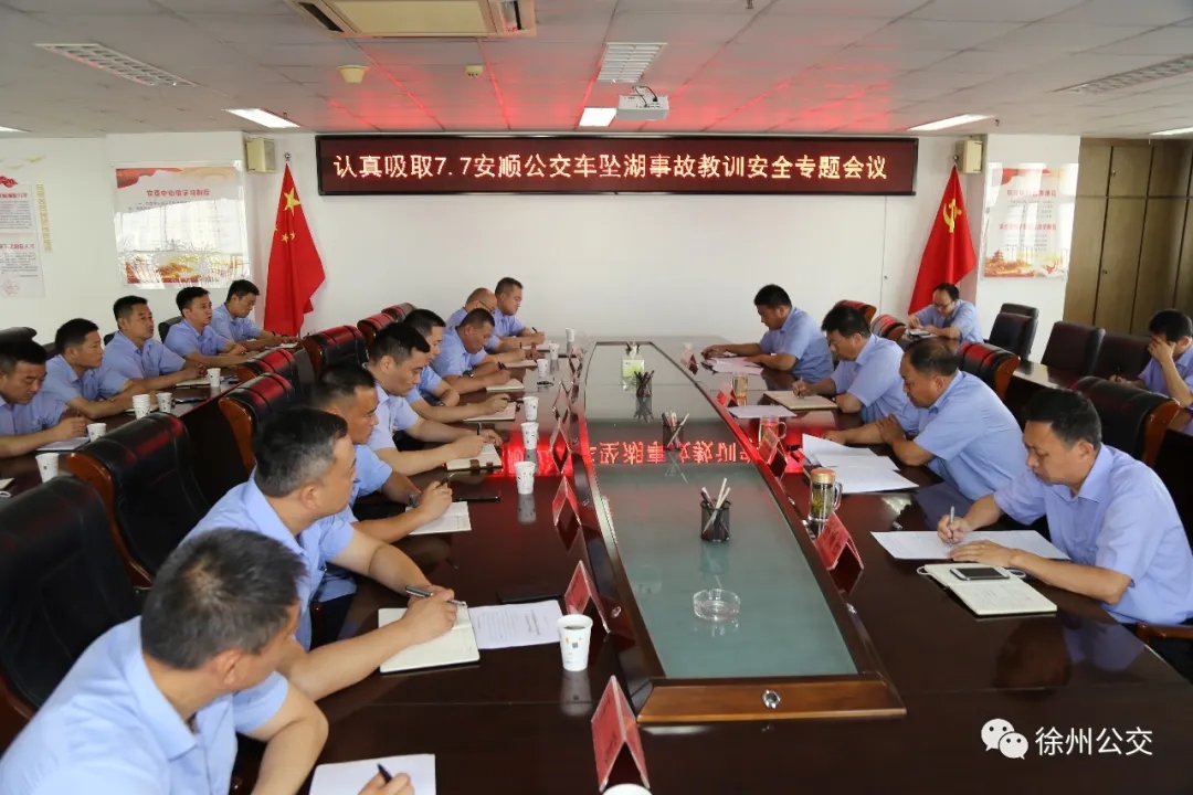 為吸取“7·7”安順公交車(chē)墜湖事故教訓,認真貫徹落實(shí)習近平總書(shū)記關(guān)于安全生產(chǎn)重要論述,按照市委、市政府安全生產(chǎn)專(zhuān)項整治三年行動(dòng)方案及市交通運輸局、市交通控股集團相關(guān)要求,7月10日,徐州公交集團召開(kāi)了認真吸取“7·7”安順公交車(chē)墜湖事故教訓安全專(zhuān)題會(huì )議。集團總經(jīng)理馮陸陸,常務(wù)副總經(jīng)理蔣成彪,調研員王遠慶以及各營(yíng)運公司經(jīng)理、安全經(jīng)理和機關(guān)、直屬單位負責人參加了會(huì )議。