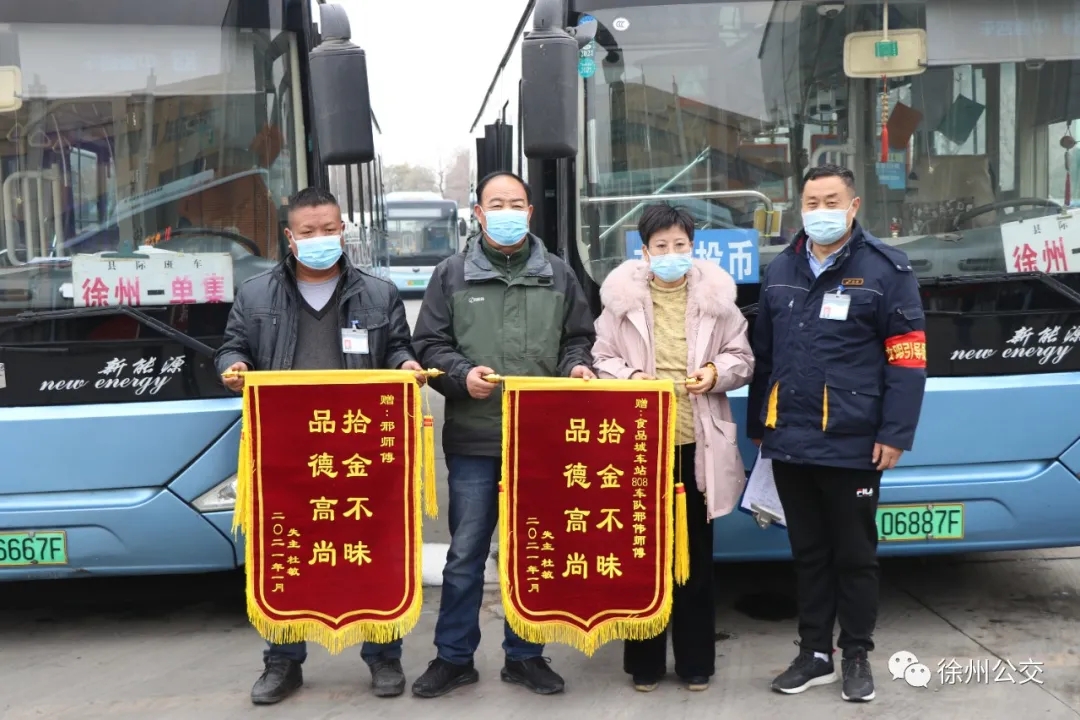 1月21日下午3時(shí),一位女士拿著(zhù)兩面錦旗來(lái)到淮海文博園公交樞紐調度室,感謝808路駕駛員邢偉師傅及車(chē)隊工作人員熱心幫助她尋找遺失物品。