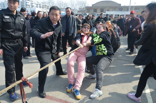 三八婦女節公司組織女員工進(jìn)行拔河比賽