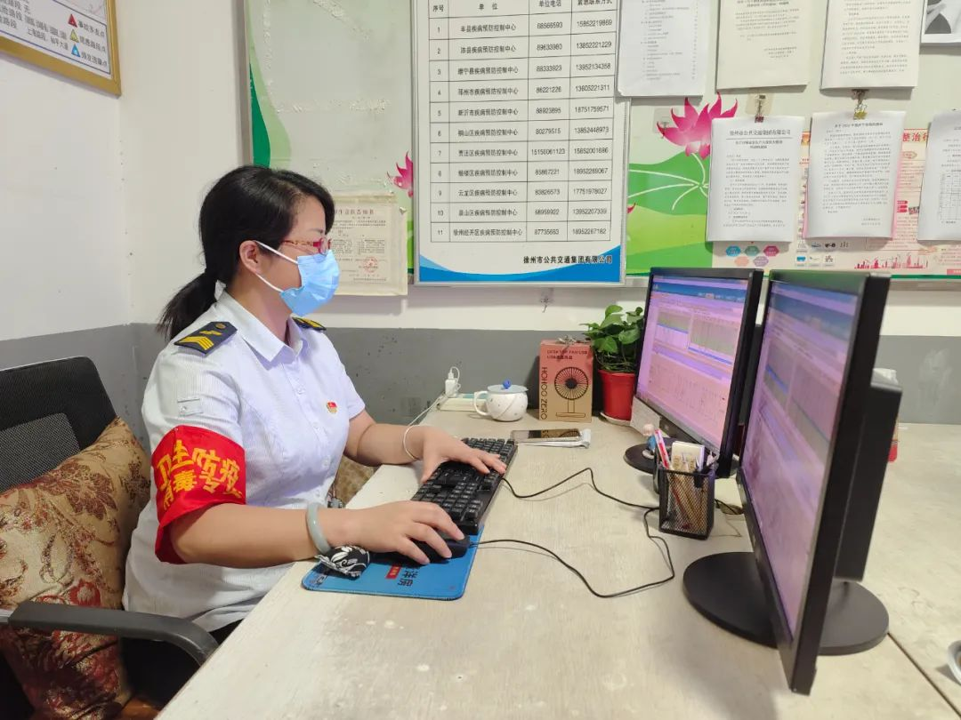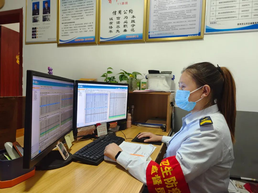 天還未亮,19路調度室里燈火通明,調度員黃靜已經(jīng)打開(kāi)電腦開(kāi)始了一天的工作,駕駛員陸續到達,車(chē)隊運管員鄒晶一邊叮囑著(zhù)駕駛員安全注意事項,一邊對其進(jìn)行酒精測試,一切井井有條,忙而不亂。首班車(chē)駕駛員紀彤仔細檢查車(chē)況、消毒、通風(fēng)等情況,車(chē)上、車(chē)下絲毫不敢疏忽,做好出車(chē)前的準備。