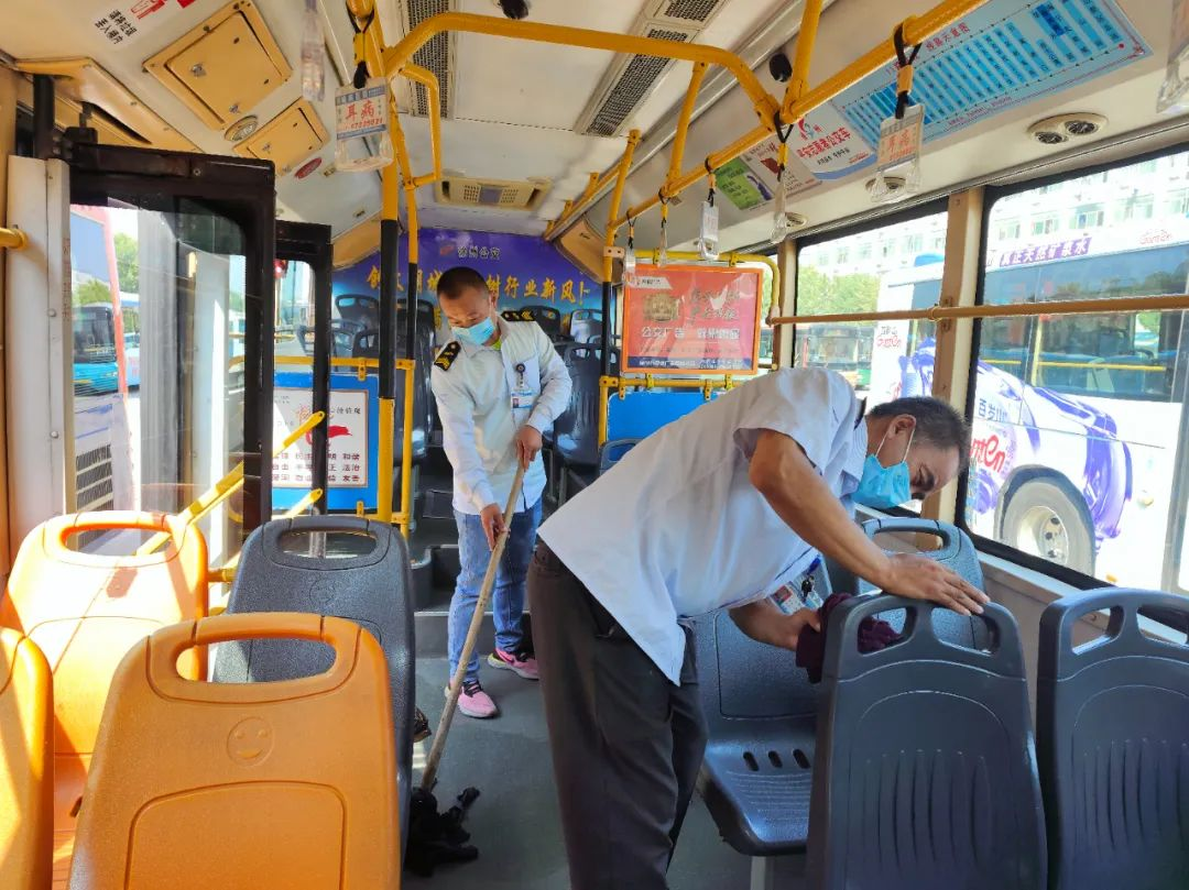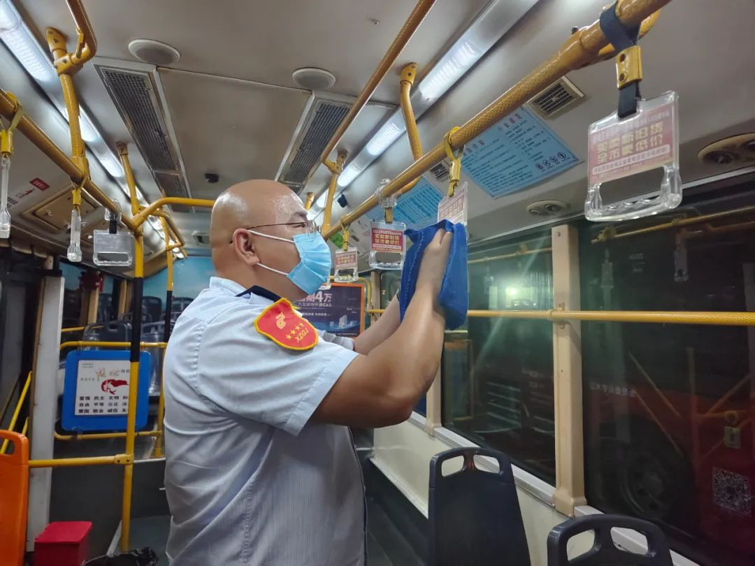 氣溫逐漸上升,陸續到了中午交接班時(shí)間,上、下午班駕駛員一起打掃車(chē)輛衛生,并為車(chē)輛消毒,地板、扶手、座椅,不放過(guò)任何一處死角,只為給市民乘客提供更安全、舒適的乘車(chē)環(huán)境。