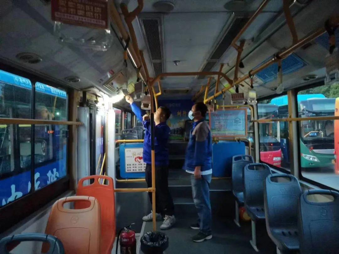 檢修人員在車(chē)輛回場(chǎng)后,逐輛進(jìn)行檢修和調試,確保第二天能順利出車(chē)。而駕駛員宗浩一絲不茍地做著(zhù)消毒工作,“雖然下班收車(chē)了,但現在是國慶節假期的特殊時(shí)期,而且疫情還沒(méi)有結束,如果公交車(chē)的消毒沒(méi)做好,那就是對乘客不負責。”