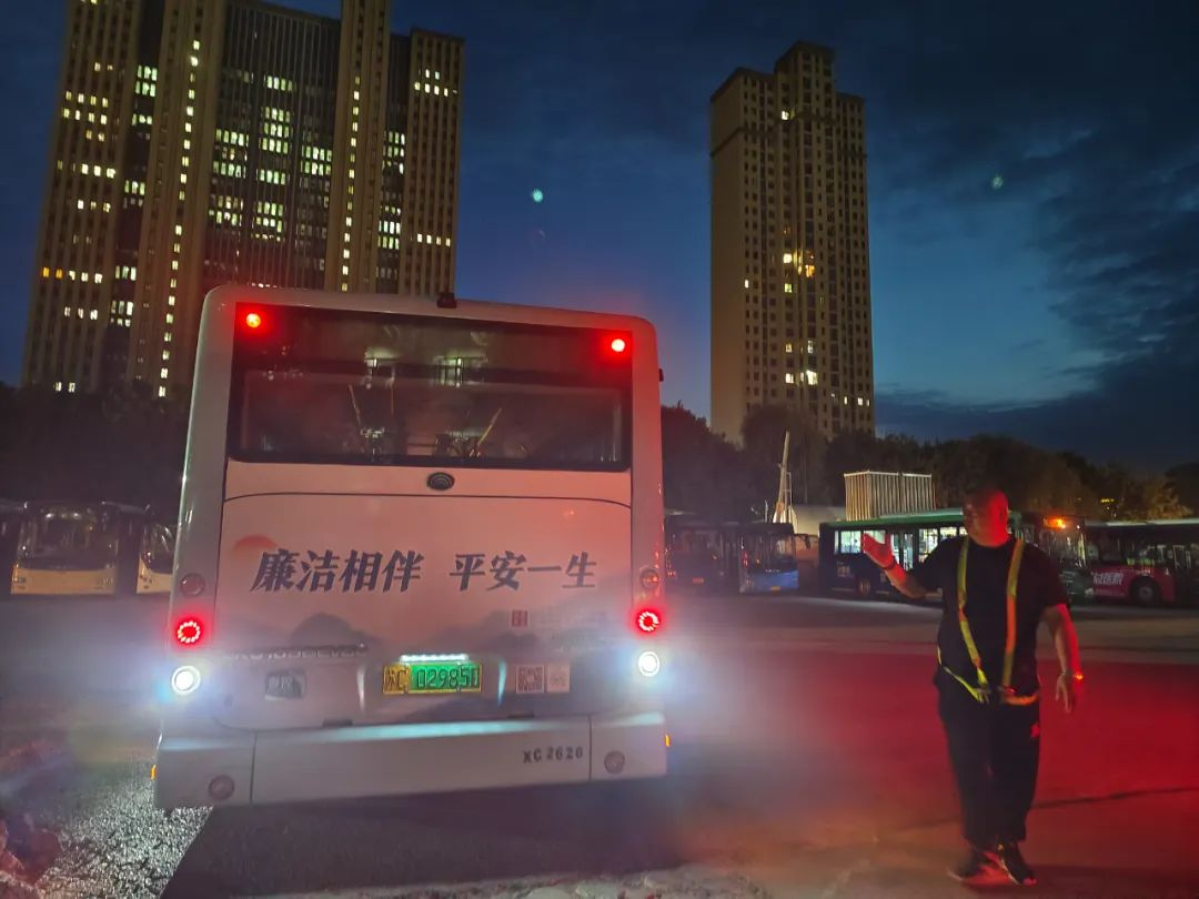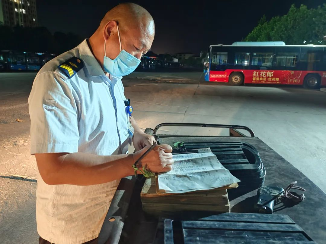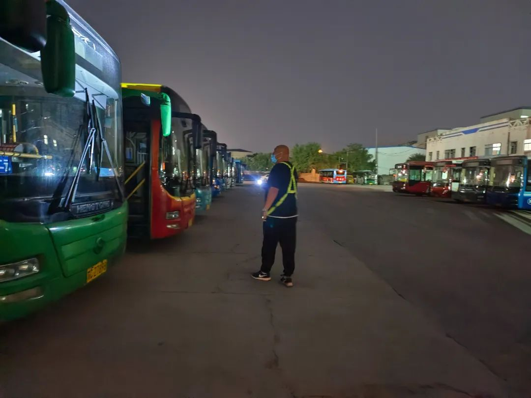 進(jìn)入丑時(shí),許多人都已進(jìn)入夢(mèng)鄉,末班車(chē)回場(chǎng),在萬(wàn)籟俱靜的夜里,內保員徐智指揮倒車(chē),同時(shí)還要逐個(gè)檢查停車(chē)場(chǎng)內的車(chē)輛擺放,匯報車(chē)輛歸場(chǎng)情況,確保車(chē)輛全部安全歸場(chǎng)。
