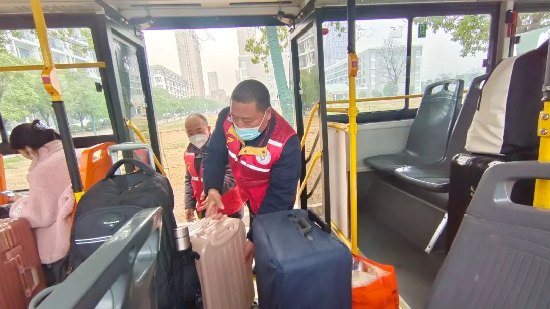 12月7日至12月8日連續兩天,新城公司組織20余輛“定制公交”在徐州工程學(xué)院蓄勢待發(fā),公司管理人員及雷馳平安志愿服務(wù)隊現場(chǎng)指揮車(chē)輛安全停放,有序引導師生排隊上車(chē),熱心幫助師生搬運行李。據統計,兩天安全運送學(xué)生共計1000余名。