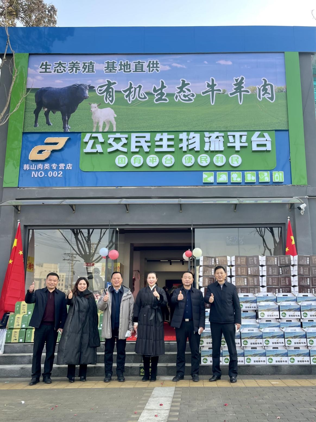 為進(jìn)一步保障周邊居民生活需求,方便廣大市民采購生鮮肉品,1月8日上午,徐州公交民生物流平臺(韓山肉類(lèi)專(zhuān)營(yíng)店)正式開(kāi)業(yè)。開(kāi)業(yè)當天,公交集團黨委副書(shū)記、總經(jīng)理袁夫松,黨委副書(shū)記、紀委書(shū)記、工會(huì )主席竇同銀,宿州草源牧業(yè)集團公司董事長(cháng)馬良兵,徐州土巴豬生態(tài)農業(yè)有限公司總經(jīng)理鄭紅梅一行到店祝賀。