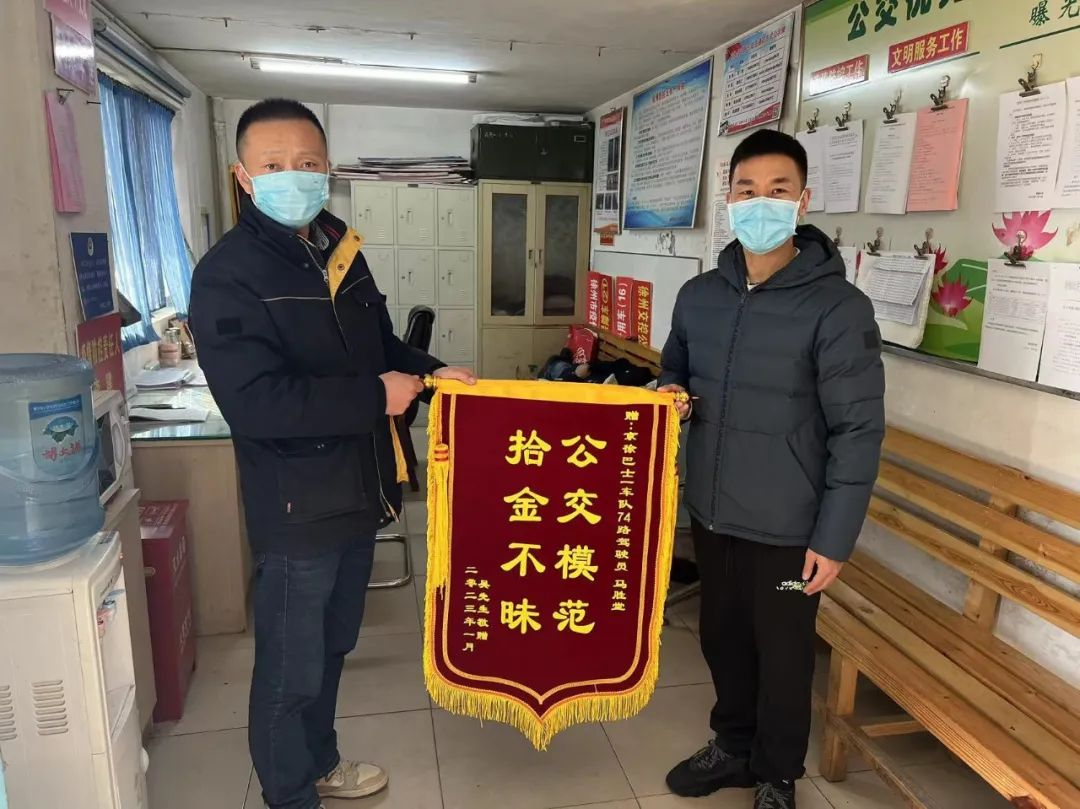 1月17日上午9時(shí),徐州公交京徐巴士公司一車(chē)隊收到了一面印有“公交模范,拾金不昧”的錦旗。