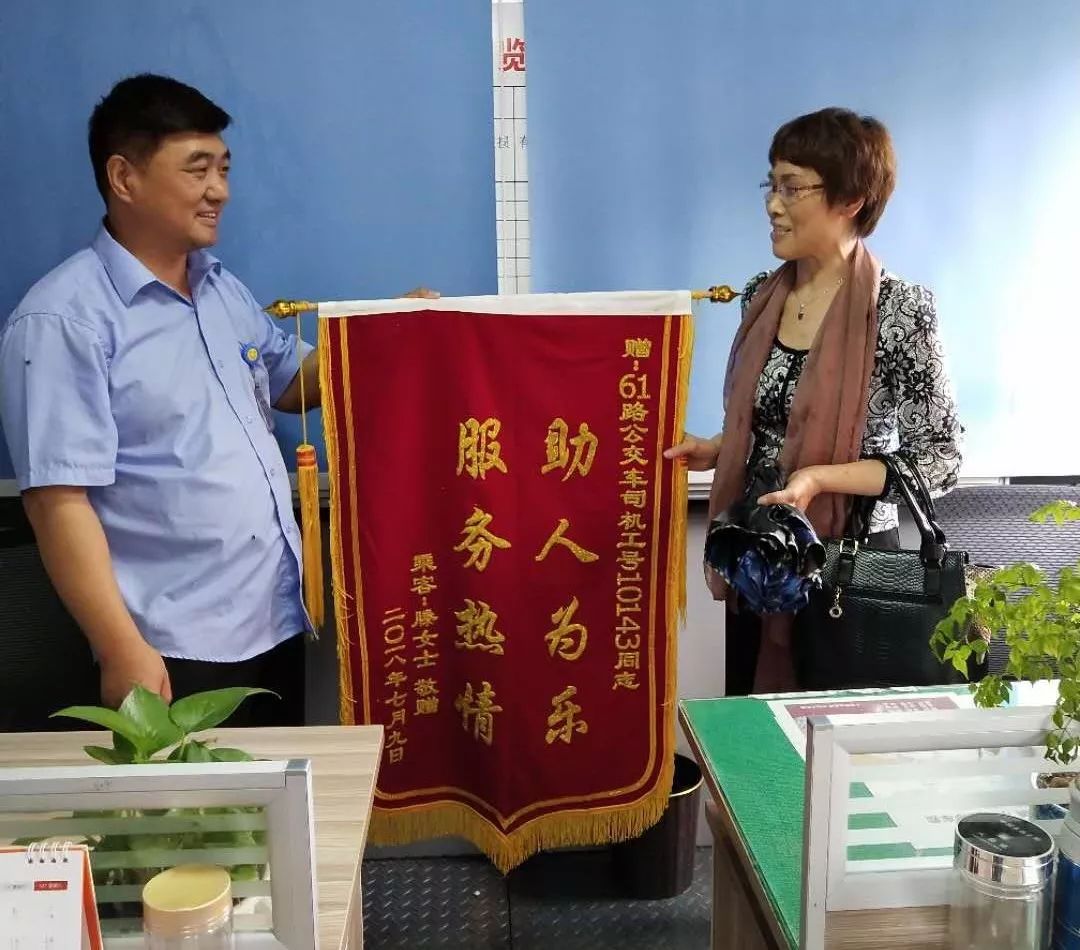 7月9日,市民滕女士到宣武車(chē)站,送來(lái)一面錦旗,專(zhuān)門(mén)感謝61路駕駛員段世望。