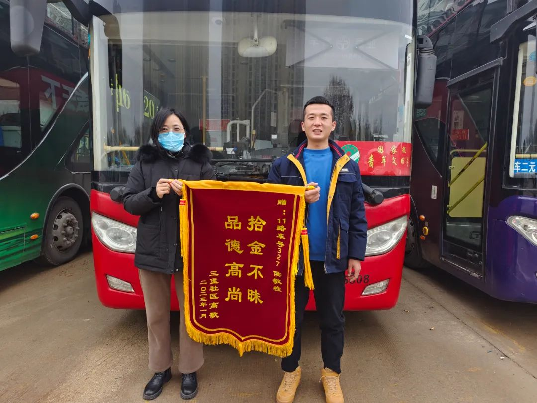 1月19日,失主郭女士通過(guò)公交集團熱線(xiàn)電話(huà)聯(lián)系到車(chē)隊管理人員,經(jīng)過(guò)車(chē)隊的查詢(xún)落實(shí)后,郭女士與工作人員約好時(shí)間前來(lái)取回失物。1月20日,郭女士送來(lái)了一面錦旗錦旗,并撥打了熱線(xiàn)電話(huà)12345表?yè)P駕駛員王怡拾金不昧的精神。王怡熱心助人的行為充分體現了徐州公交駕駛員高尚的道德品質(zhì),他用實(shí)際行動(dòng)體現了 “向善、向美、向上”的價(jià)值追求,在平凡的崗位上傳遞公交正能量。